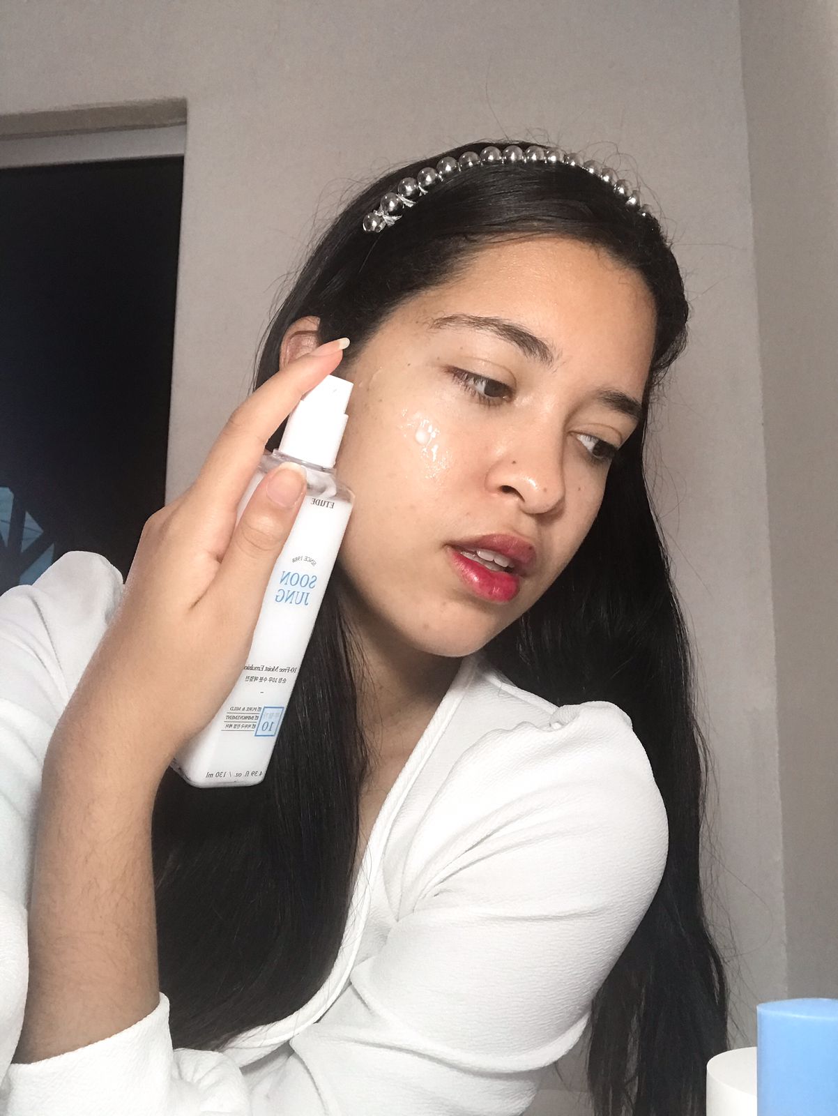 ''Minha vida começa muito cedo todos os dias então logo depois de fazer meu skincare da manhã eu já aplico minha maquiagem. Minha rotina antes da maquiagem é dividida basicamente em limpar (Sabonete facial) a pele, tonificar( Toner), hidratar ( serum e hidratante)e proteger (Protetor Solar).''